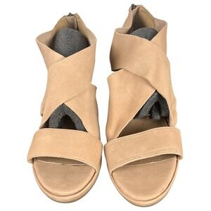 EILEEN FISHER MARLA BLOCK HEELED LEATHER SANDAL IN EARTH NUBUCK NWOB WOMEN'S 9.5