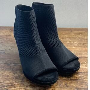 EILEEN FISHER Margate Peep Toe Bootie In Midnight Stretch Fabric