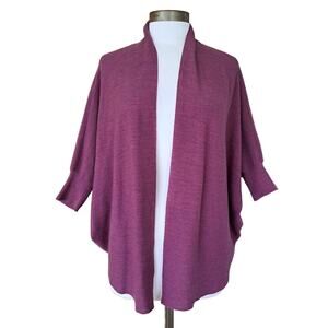 EILEEN FISHER Merino Wool Cardigan Cocoon Sweater Purple Melange Dolman Boxy