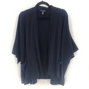 EILEEN FISHER Merino Wool Open Kimono Cardigan Navy Oversized Pockets