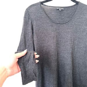 Dark gray merino wool tunic. Scoop neck. Tapered sleeves. Loose, A-line fit. Great preloved condition! Size small petite