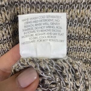 EILEEN FISHER Metallic Open Knit Sweater Beige Womens L Linen Blend Lagenlook