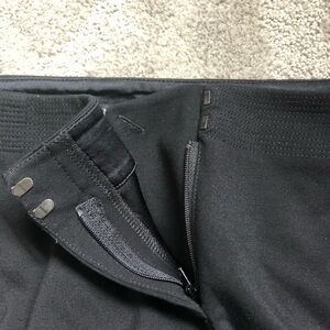 Double hook and eye zipper closure. Inside button fell off