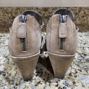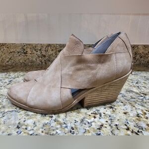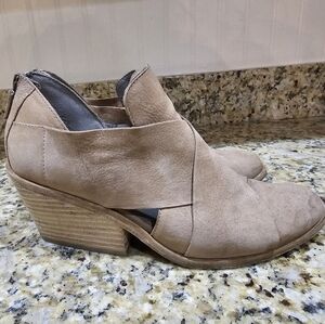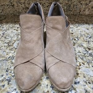 EILEEN FISHER NATURAL WALT CROSS STRAP SUEDE BLOCK HEEL BOOTIES SIZE 8