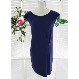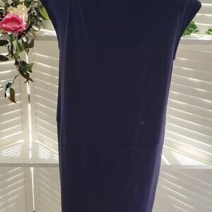 EILEEN FISHER NAVY SLEEVELESS PIN TUCK DRESS SMP