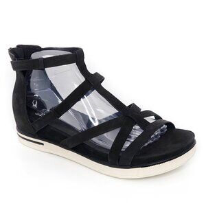 EILEEN FISHER NWOB Sola Tumbled Nubuck Leather Back Zip Sandals Black