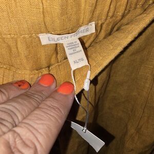 EILEEN FISHER NWT XL 100% Organic Linen Mustard Wide Leg Pull On Pants MSRP $218