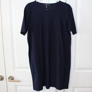 EILEEN FISHER Navy Blue Shirt Dress Stretch Crepe Short Sleeve Zip Side | MP