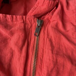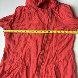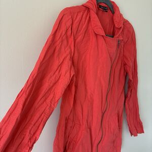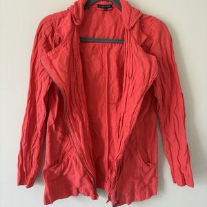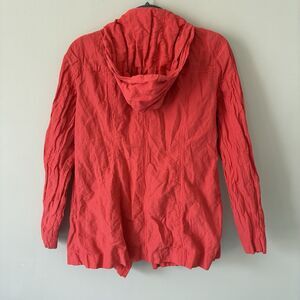 EILEEN FISHER Orange Red Lory Rumpled Cotton Steel Hooded Jacket Small Lagenlook