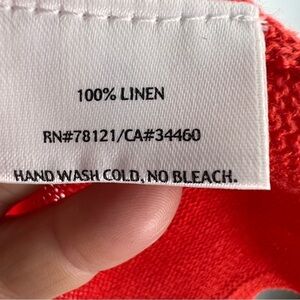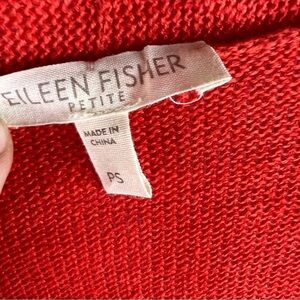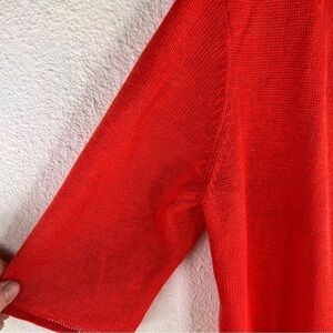 EILEEN FISHER Orange Short Sleeve Open Front Sweater. 100% Linen. Size PS
