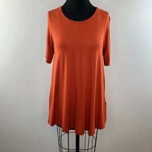 EILEEN FISHER Orange Tunic Top Subtle Pleats Jewel Neck Elbow Sleeve Sz S Small