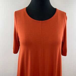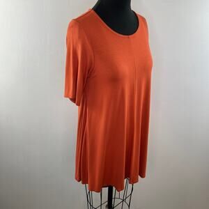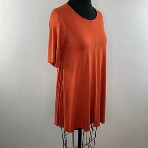 Eileen Fisher Orange Tunic Top Subtle Pleats Jewel Neck Elbow Sleeve Size Small