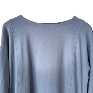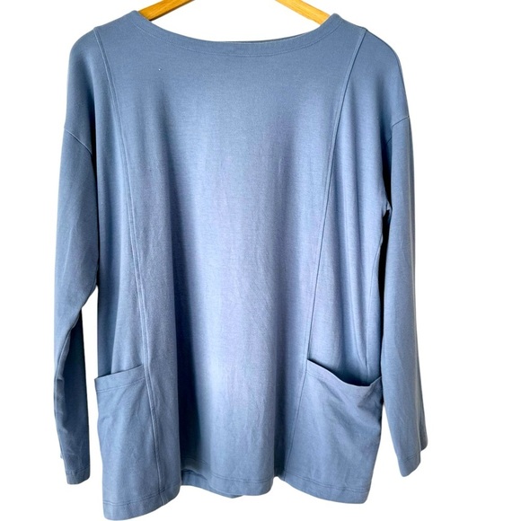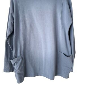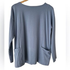 EILEEN FISHER Organic Cotton Stretch BATEAU-NECK LONG-SLEEVE JERSEY POCKET TOP Horizon Blue