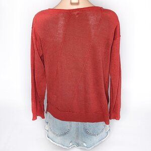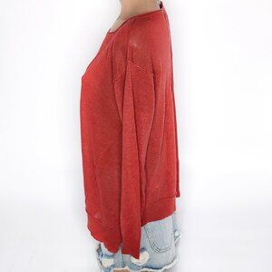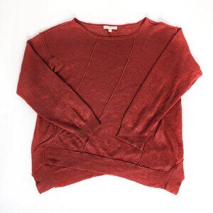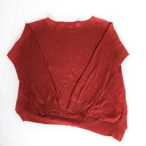 EILEEN FISHER Organic Linen Asymmetrical Hem Sheer Sweater Red Relaxed Fit Lightweight Round Neck Long Sleeve
