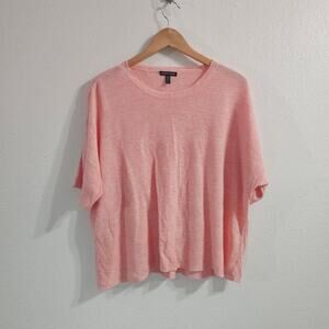 EILEEN FISHER Organic Linen Crewneck Top Pink Size L