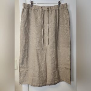 EILEEN FISHER Organic-Linen Midi Skirt Elastic Waist Drawstrings Khaki Size L