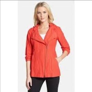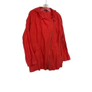 EILEEN FISHER POPPY Rumpled Cotton Steel Full Zip Hooded Jacket SZ XL