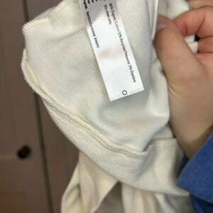 Pre owned overall good condition. Please note this has a stain on the front and needs to be treated. Has cute pockets on front (pictured). WOMENS size large.