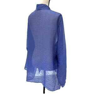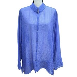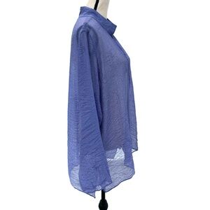 EILEEN FISHER PURPLE SHEER CRINKLE BUTTON DOWN MANDARIN COLLAR TOP