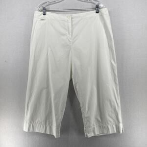EILEEN FISHER Pants L Cotton Twill Wide Leg Cropped Back Drawstring Tie White