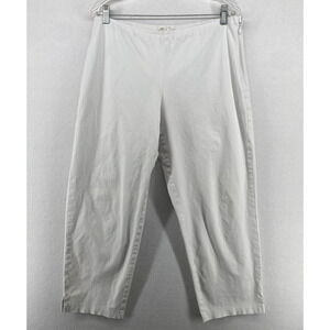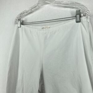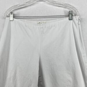 EILEEN FISHER Pants L Twill Cotton Stretch Tapered Ankle Side Zip White