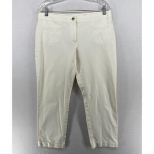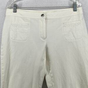 EILEEN FISHER Pants M Cotton Twill Stretch Tapered Cropped Cuffed Utility White