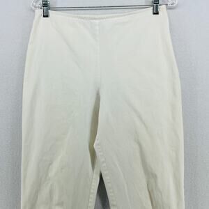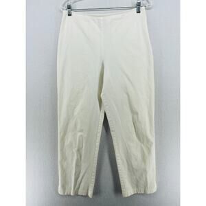 EILEEN FISHER Pants M Stretch Cotton Twill Tapered Side Zip Chino Trouser Bone White USA