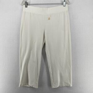 EILEEN FISHER Pants M Washable Stretch Crepe Cropped Elastic Waist Off White USA