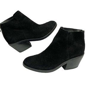 EILEEN FISHER Peer Black Suede Rear Zip Heeled Ankle Booties