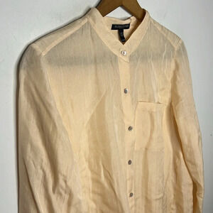 EILEEN FISHER • Petite Silk Blend Button Up Rounded Collar Blouse