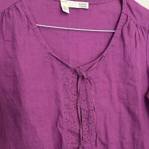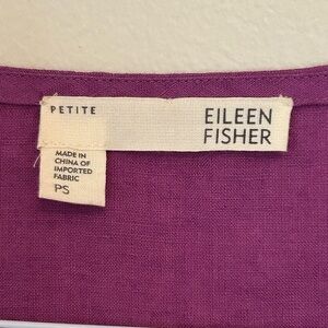 EILEEN FISHER Plum Purple 100% Irish Linen Bead Split Neck Top small petite