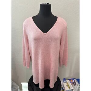 EILEEN FISHER | Plus Size Pink Silk Blend Sweater V-Neck 3/4 Sleeve!