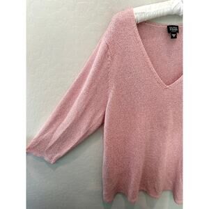 EILEEN FISHER | Plus Size Pink Silk Blend Sweater V-Neck 3/4 Sleeve | 1X