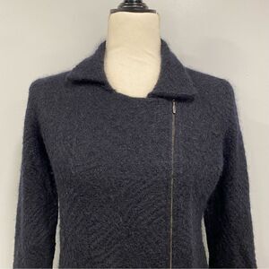 EILEEN FISHER S Black Cats Mohair Blend Moto Sweater Jacket Asymmetrical Zipper: Flaw