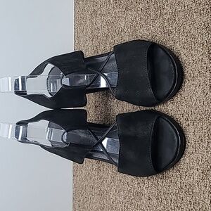 EILEEN FISHER SANDALS HEELS DOE TUMBLED NUBUCK LEATHER STRAP BLACK SZ 9