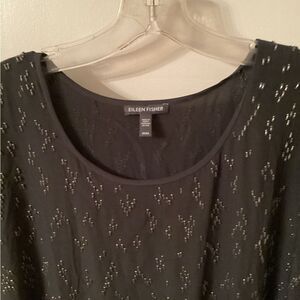 EILEEN FISHER SIZE M BLACK SILK BEADED CHEVRON DESIGN CAP SLEEVE SCOOP NECK TOP