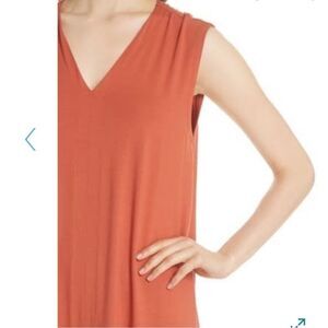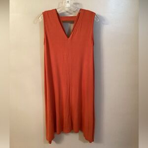 EILEEN FISHER SZ XS ORANGE RUST V NECK CUTOUT JERSEY SLEEVELESS DRESS