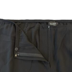 EILEEN FISHER Silk Georgette Crepe Full Length Straight Pants Zipper Black Large