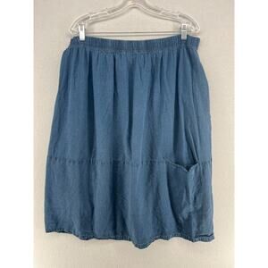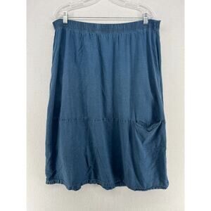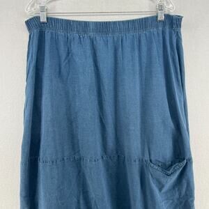 EILEEN FISHER Skirt L Hemp Organic Cotton Chambray A-Line Pull On Pocket Blue