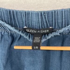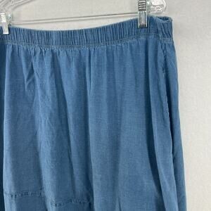 EILEEN FISHER Skirt L Hemp Organic Cotton Chambray A-Line Pull On Elastic Waist Blue