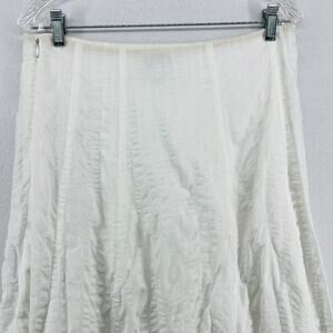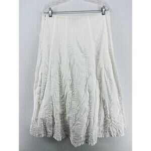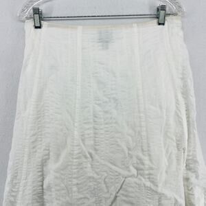 EILEEN FISHER Skirt PP Petite Cotton Seersucker Midi A-Line Side Zip Lined White