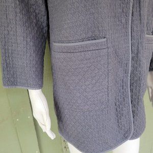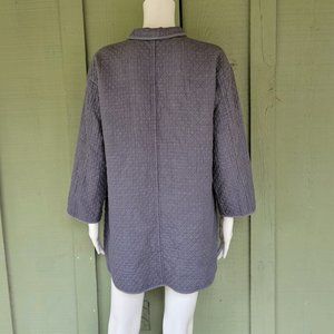 This is a lovely slate blue/gray quilted cotton lightweight coat/jacket from Eileen Fisher.