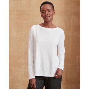 Soft and lightweight in jersey-knit organic cotton, this layer-or-not essential stands out with a slightly swingy silhouette, open neckline, and very fine slubbed texture.
