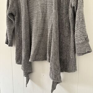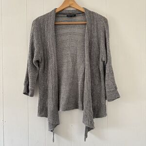 EILEEN FISHER Cardigan Sweater Size Small Gray Knit Linen/Silk Open Front Waterfall Ribbed Neutral/Minimalist