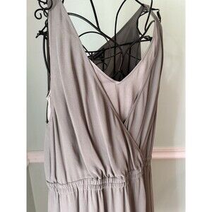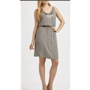 EILEEN FISHER Smoke Gray Silk Crepe Charmeuse Layered Double V Dress M