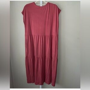 EILEEN FISHER Stretch Jersey Knit Tiered Dress Elegant Pink Madi Dress Sz L