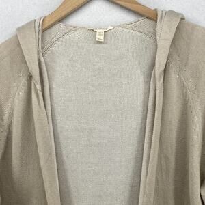 EILEEN FISHER Sweater L Organic Cotton Duster Cardigan Hoodie Open Front Beige