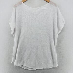 EILEEN FISHER Sweater L Organic Linen Short Sleeve Boat Neck Sheer White
