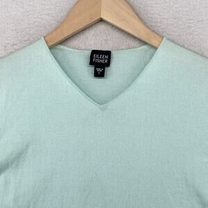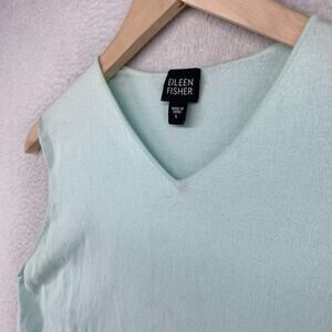 EILEEN FISHER Sweater L Tank Vest V-Neck Boxy Pullover 100% Cotton Aqua Blue