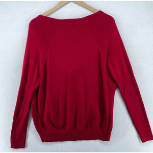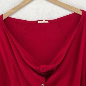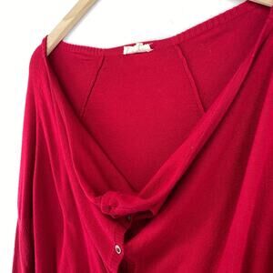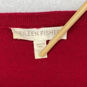 EILEEN FISHER Sweater M Organic Cotton Cardigan Draped Cowl Button Front Red